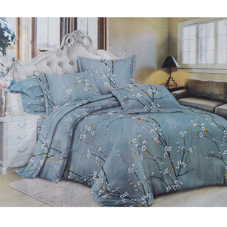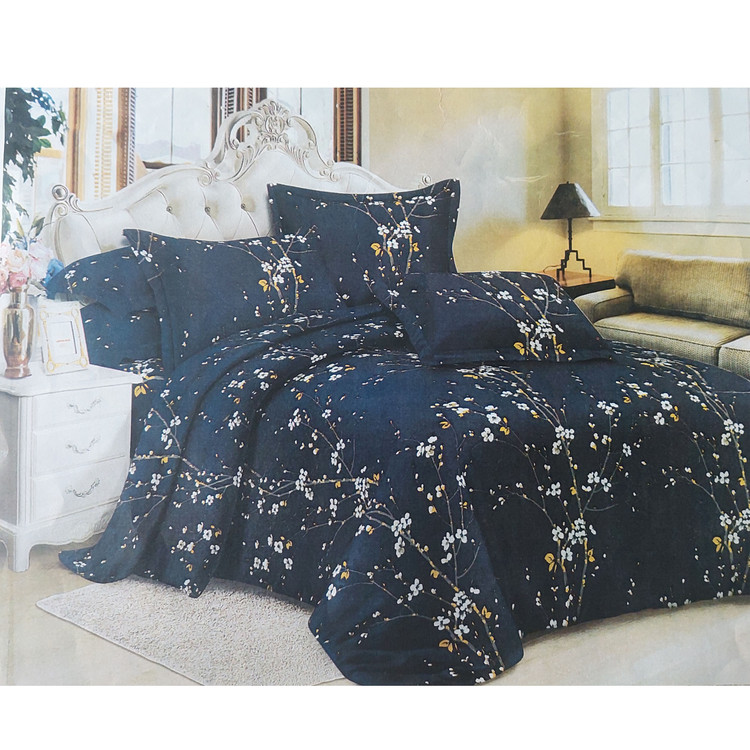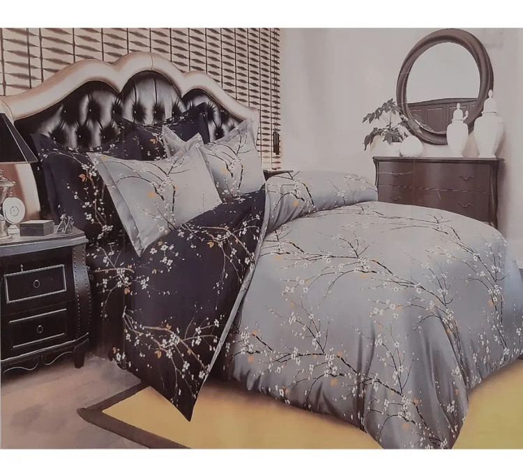 ست 6 تکه روتختی شامل:2 عدد روبالشتی 50*70 سانت.2 عدد رویه کوسن 40*40 سانت.یک عدد ملحفه کشدوز مناسب تشک 160*200 سانت.و یک عدد لحاف 220*240 سانت می باشد.رنگ پارچه ثابت و بدون آب رفت می باشد.یک رو طوسی و یک روی دیگر سرمه ای می باشد.