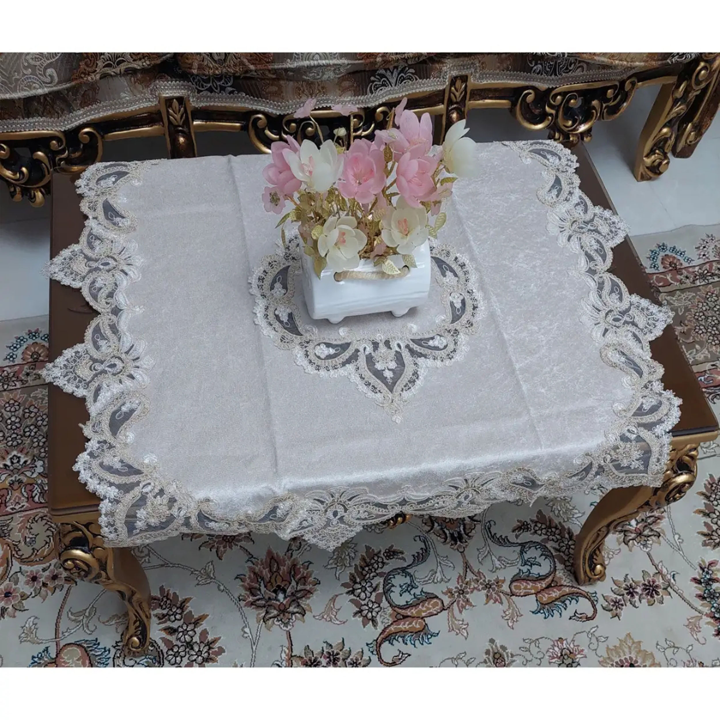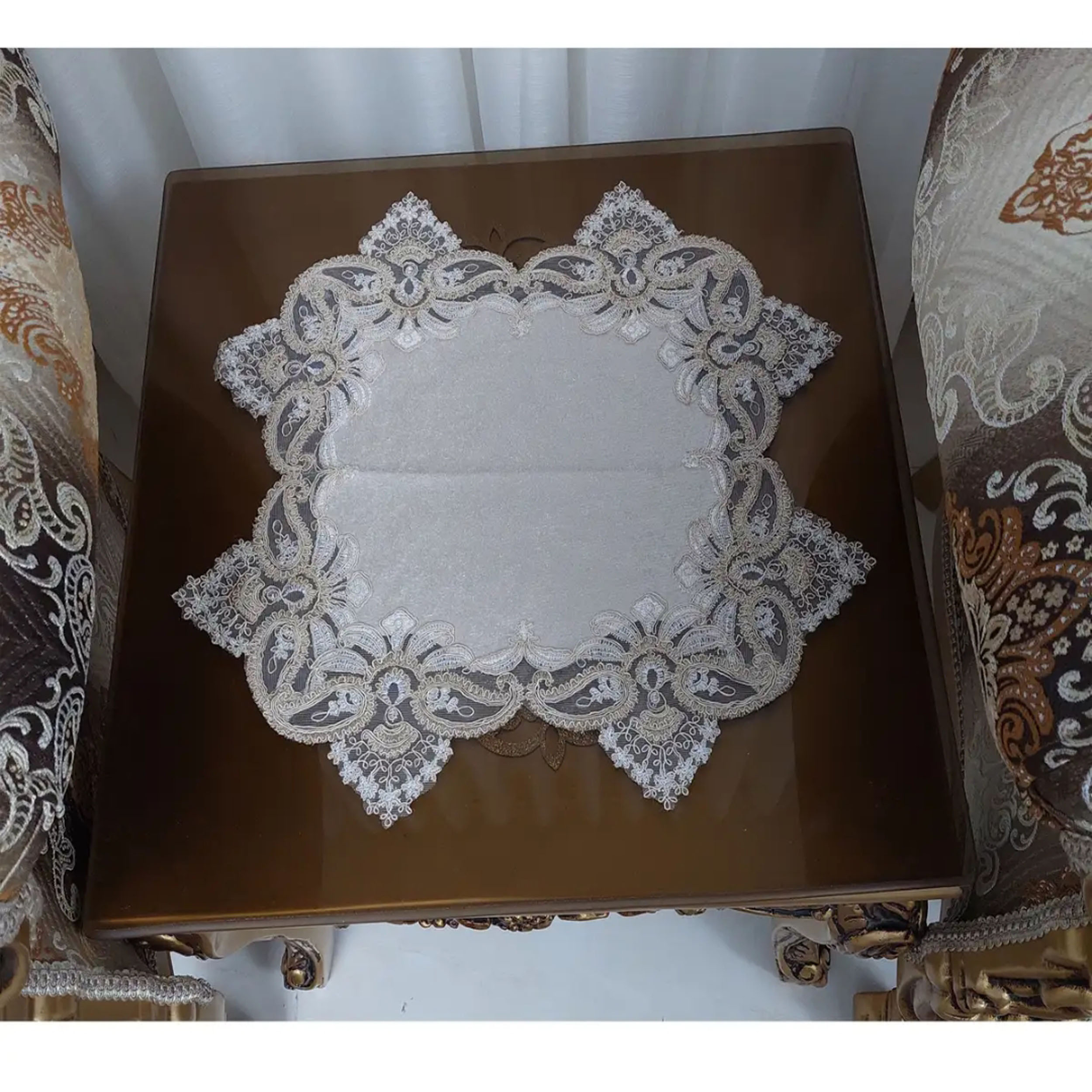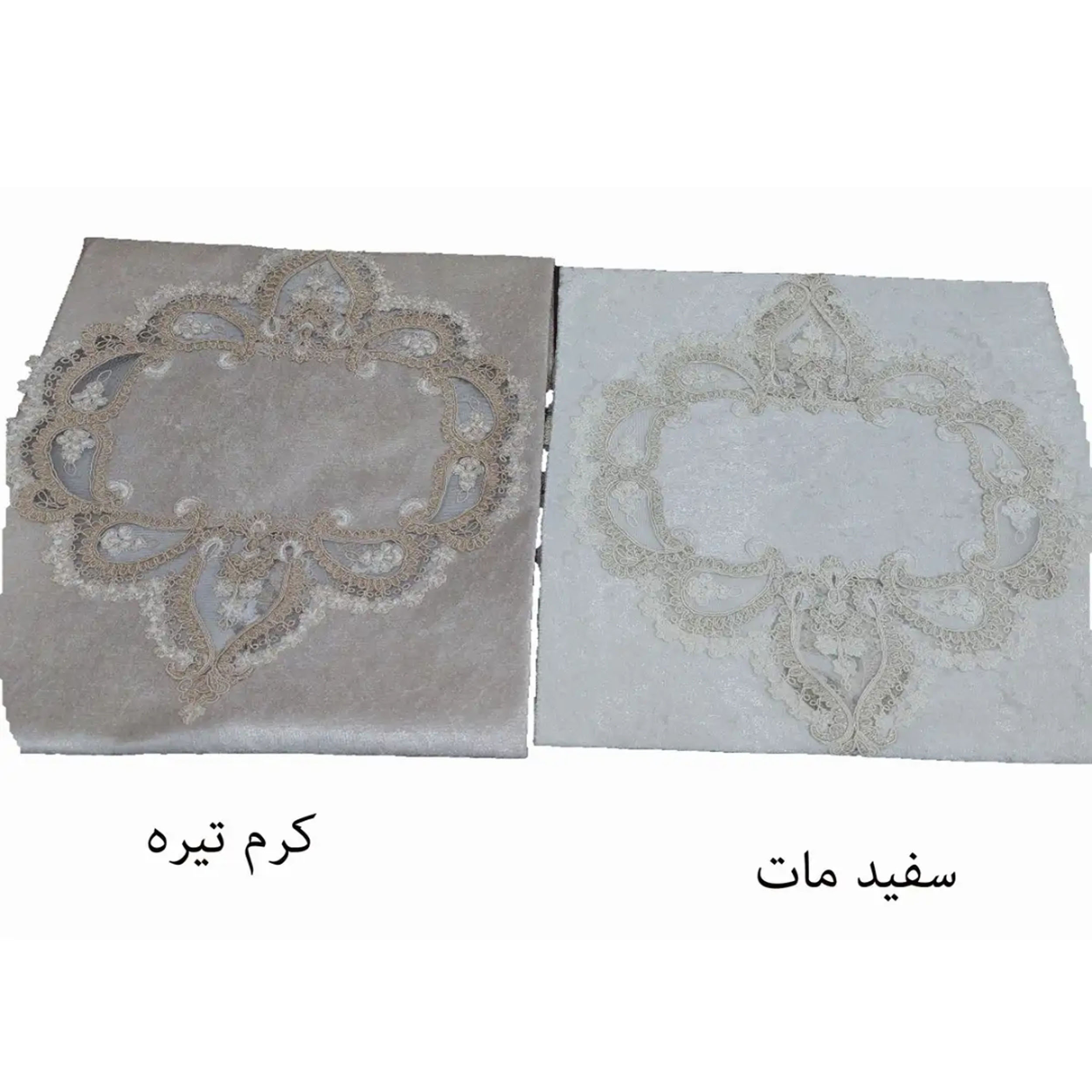 ست رومیزی ۳ تکه شامل:یک عدد جلو مبلی در ابعاد ۸۰*۸۰ سانتی متر و ۲ عدد روی عسلی در ابعاد ۴۵*۴۵ سانتی متر می باشد.